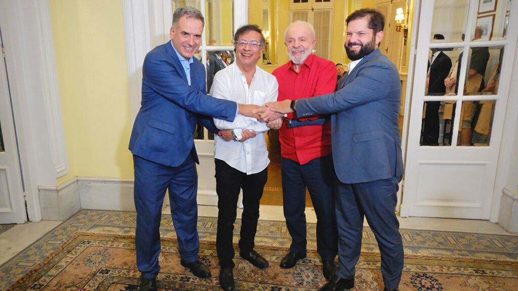 El 28 de febrero, el presidente Petro participó en una cena organizada por el presidente de Brasil, Luiz Inácio Lula da Silva, en la embajada brasileña en Montevideo. En este encuentro estuvieron presentes los presidentes de Chile, Gabriel Boric, y el presidente electo de Uruguay, Yamandú Orsi. La reunión se centró en fortalecer la democracia y buscar caminos para la unidad de Suramérica. El presidente Petro destacó en sus redes sociales: «Buscando los caminos de la unidad de Suramérica».